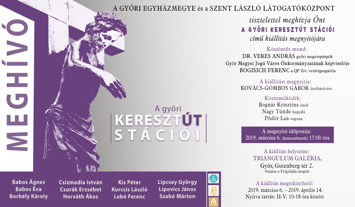 A Győri Egyházmegye és a Szent László Látogatóközpont tisztelettel meghívja Önt A GYŐRI KERESZTÚT STÁCIÓI című kiállítás megnyitójára.