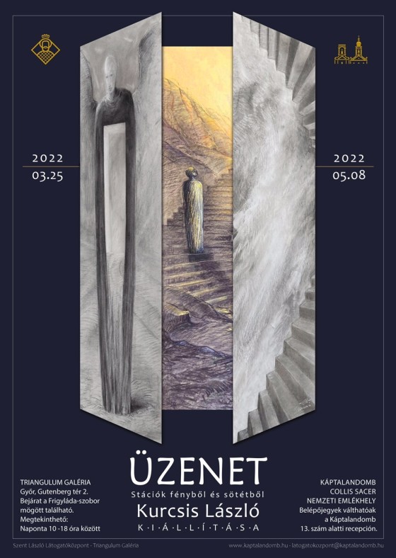 ÜZENET - Stációk fényből és sötétből címmel Kurcsis László grafikusművész kiállítása nyílik március 25-én, pénteken 16.30 órakor a Triangulum Galériáéban (Gutenberg tér 2.) . Az eseményen Dr. Veres András megyéspüspök mond köszöntőt, majd a művészbarát, Kovács-Gombos Gábor DLA, festőművész, egyetemi docens nyitja meg a tárlatot. Hegedűn Bukits Ernő működik közre.