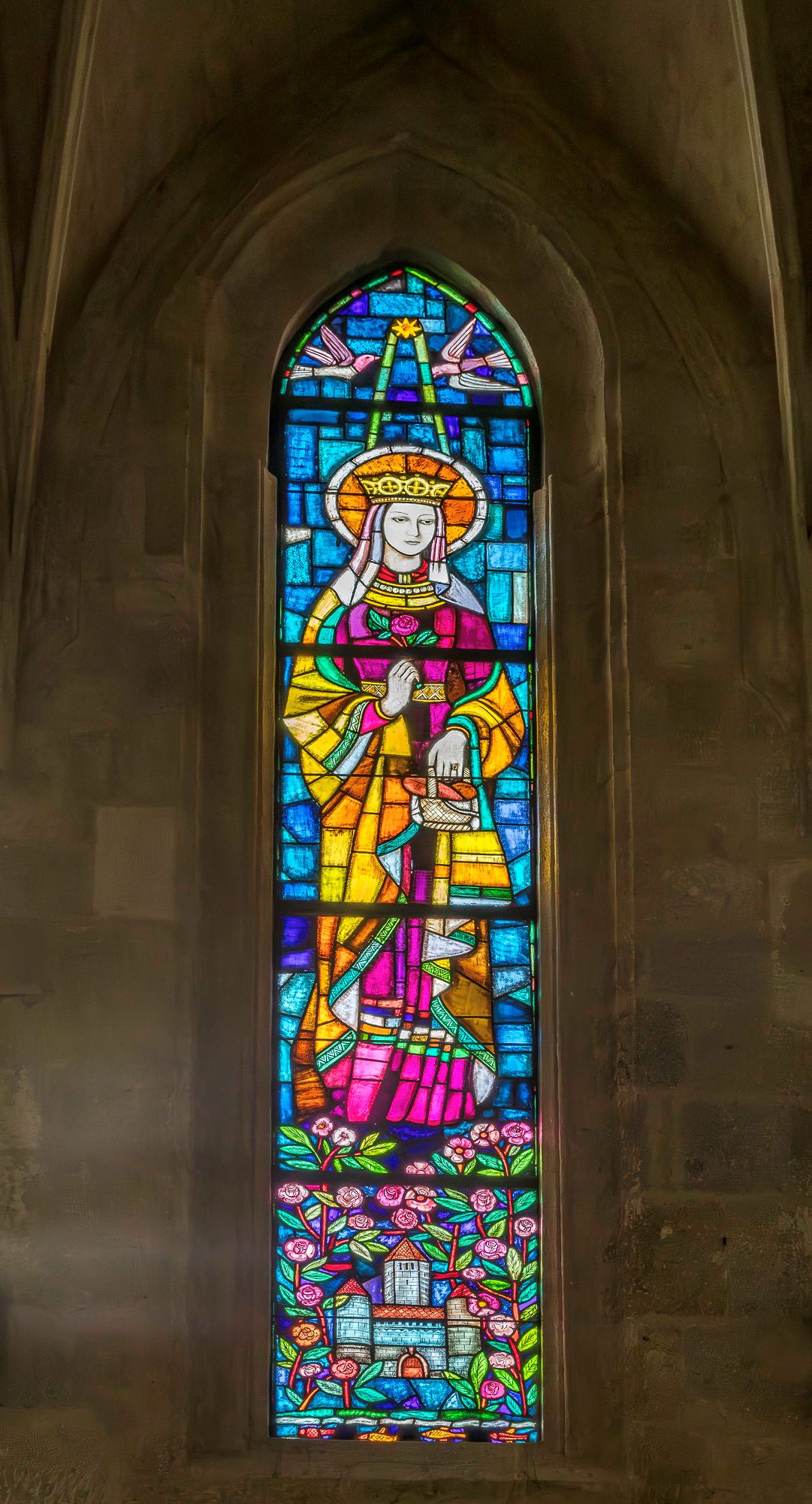 Árpád-házi Szent Erzsébetet ábrázoló üvegablak
